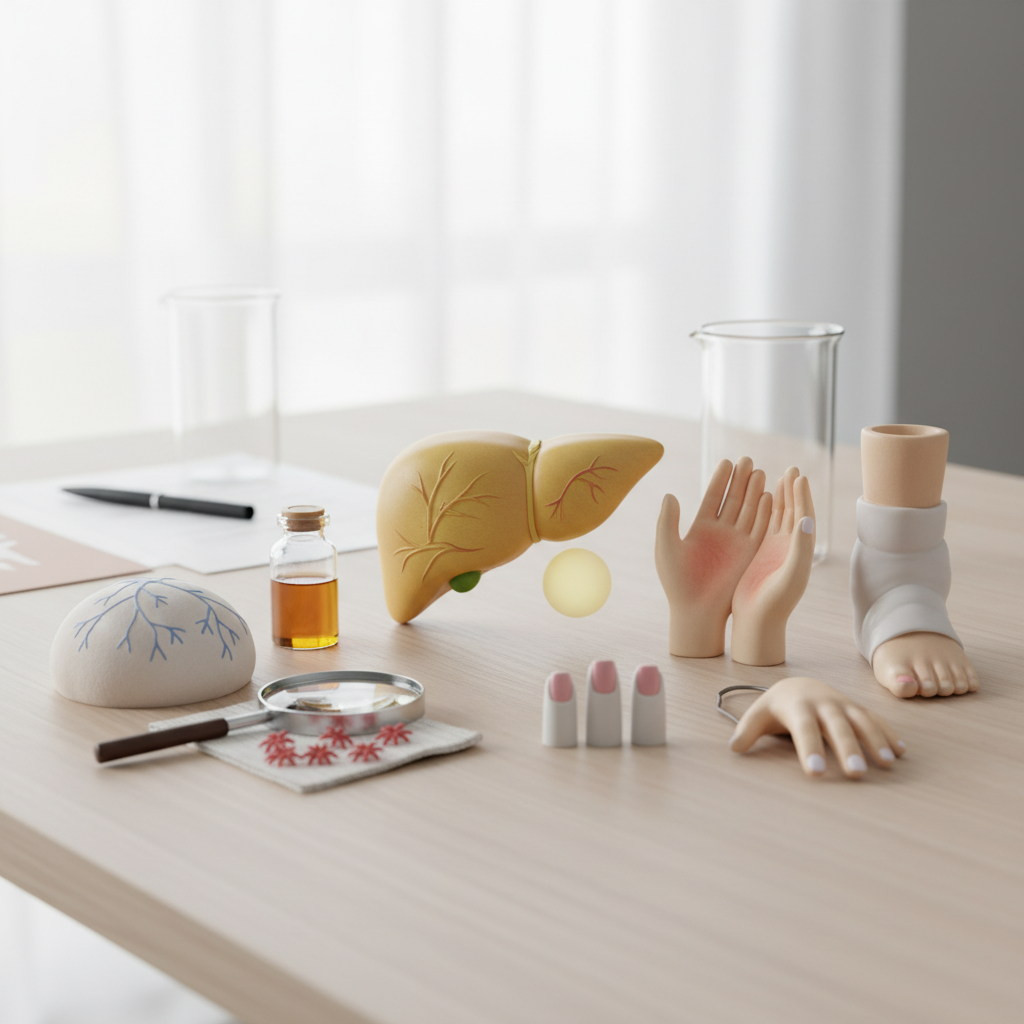 - Odos pokyčiai: Blyški, melsva arba pernelyg blizgi kojų oda, lėtai gyjančios žaizdelės ar išryškėjęs venų tinklas.