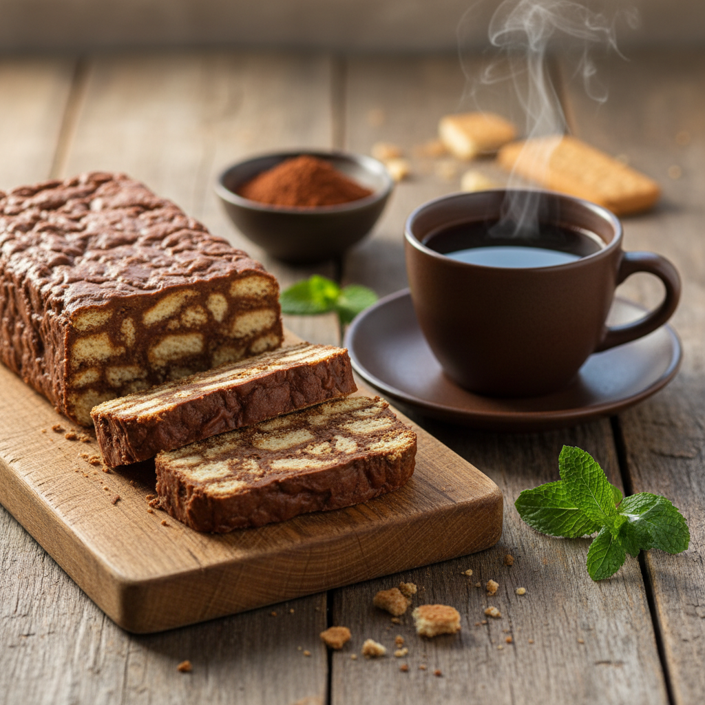 - Stingdymas. Pilnai paruoštą desertą dėkite į šaldytuvą mažiausiai 4-6 valandoms, o geriausia – palikite bręsti ir stingti pernakt. Šis ilgas laikas yra absoliučiai būtinas tam, kad ištirpęs sviestas visiškai sustingtų atgal į kietą būseną, o sausainiai tolygiai sugertų šiek tiek drėgmės ir apjungtų visus skonius.